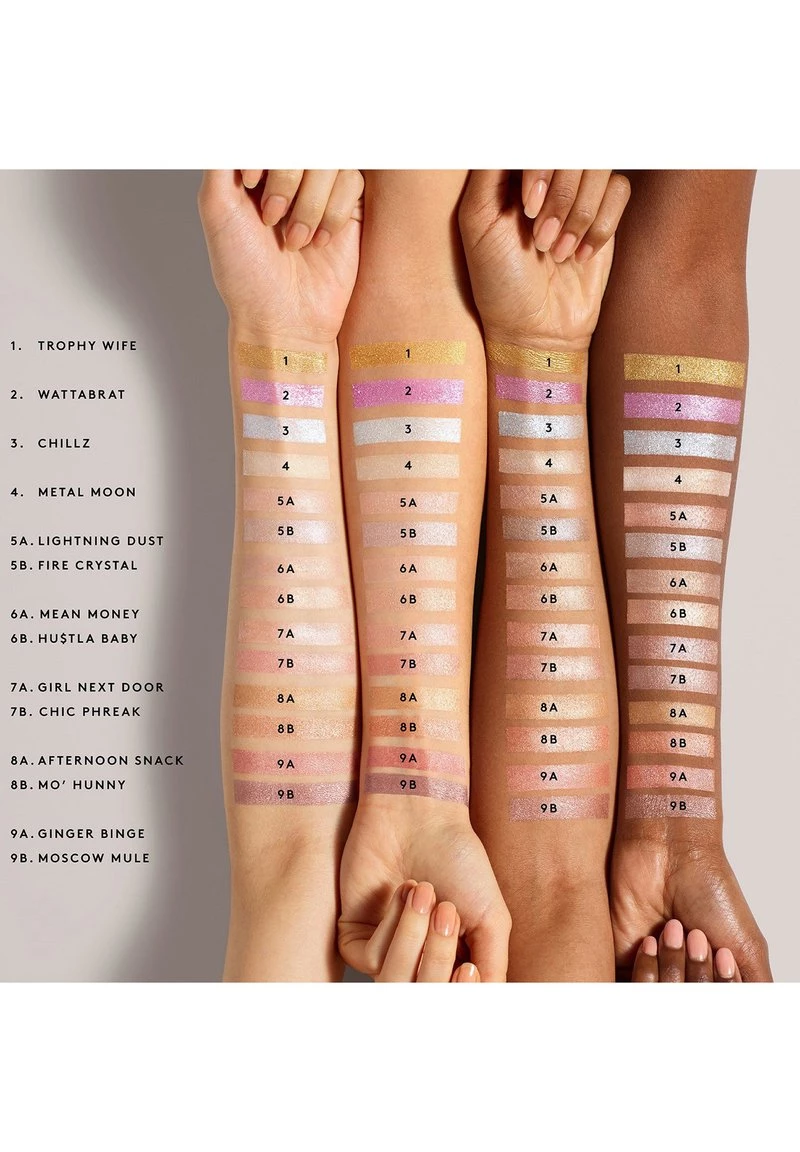 TALC, DIMETHICONE, ISODODECANE, CAPRYLIC/CAPRIC TRIGLYCERIDE, SYNTHETIC FLUORPHLOGOPITE, MICA, PHENOXYETHANOL, BISMUTH OXYCHLORIDE (CI 77163), TITANIUM DIOXIDE (CI 77891), IRON OXIDES (CI 77491, CI 77499), CARMINE (CI 75470), YELLOW 5 LAKE (CI 19140), MANGANESE VIOLET (CI 77742).DUO HU$TLA BABY